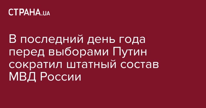 Президент России Владимир Путин, который в проморолике Netflix поздравил американцев с Новым годом, установил новую предельную штатную численность органов внутренних дел России, фактически сократив ее на 10 тысяч человек в последний день года перед выборами.