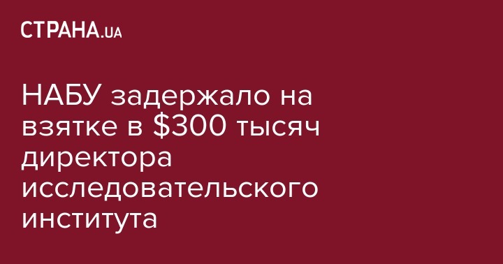 30 декабря детективы НАБУ задержали директора одного из научно-исследовательских учреждений вместе с сообщником во время получения взятки в $300 тысяч. Об этом сообщает пресс-служба ведомства.