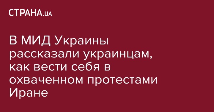 "В связи с распространением протестных акций в Исламской Республике Иран (города Мешхед, Тегеран, Керманшах, Кум, Шираз, Табриз, Решт, Исфаган, Хамадан, Саре, Кучан, Сабзевар, Хорамабад, Ахваз) МИД рекомендует гражданам Украины проявлять повышенную бдительность и осмотрительность, избегать мест массового скопления людей, митингов, манифестаций и мест религиозного культа, четко выполнять все законные требования и рекомендации сил безопасности и местной власти, быть готовыми к проверке документов и личному контролю представителями правоохранительных органов, всегда иметь при себе документы, которые удостоверяют лицо, отслеживать информацию относительно мер безопасности в местах пребывания", - говорится на сайте службы.