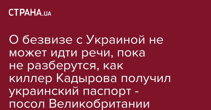 О безвизе с Украиной не может идти речи, пока не разберутся, как киллер Кадырова получил украинский паспорт - посол Великобритании