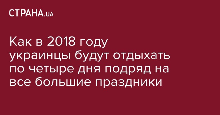 Как в 2018 году украинцы будут отдыхать по четыре дня подряд на все большие праздники