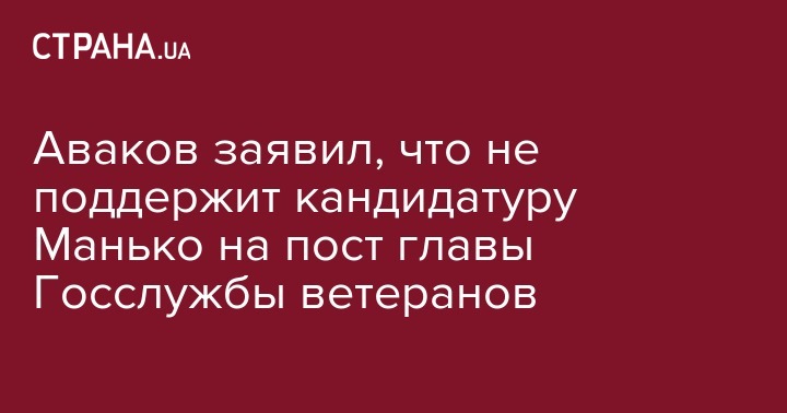 Глава МВД Арсен Аваков заявил, что не поддержит кандидатуру Валентина Манько на пост главы Госслужбы ветеранов и участников АТО во время утверждения в Кабмине.