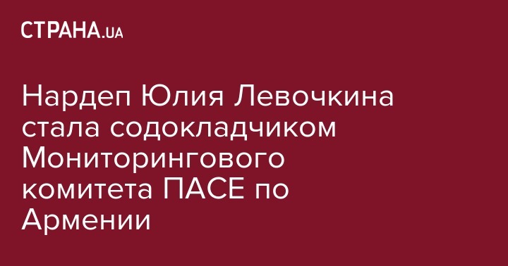 В рамках полномочий Юлия Левочкина (она входит в группу социалистов ПАСЕ - Прим.Ред.) с содокладчиком из Италии Джузеппе Галати будет осуществлять постоянный мониторинг выполнения Арменией обязательств перед Советом Европы и развития демократических институтов в этой стране.