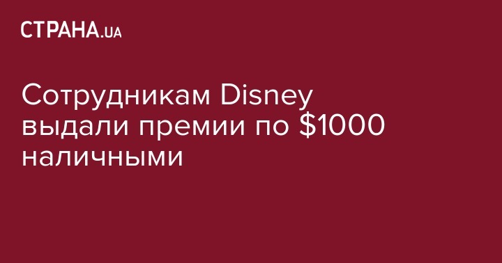 В компании Disney 125 тысяч сотрудников, которые работают больше 3 недель, получит денежную премию в $1000 наличными. Об этом сообщает Hollywood reporter.