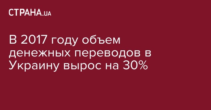 В 2017 году объем частных денежных переводов в Украину из-за границы увеличился на 30% - до $5,192 млрд. Наибольшее число денег таким способом было переведено из США.