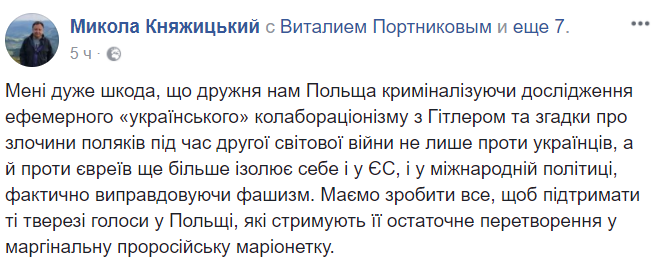 Коллега Гопко Михаил Княжицкий предрек превращение Польщи в "маргинальную пророссийскую марионетку". А украинский коллаборационизм с Гитлером депутат назвал "эфемерным".