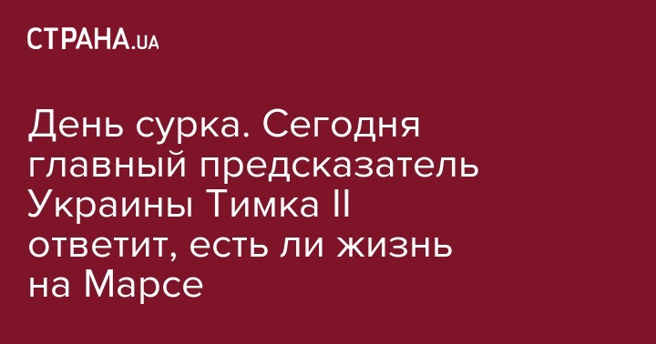 В Харьковской области сегодня разбудят предсказателя сурка Тимку II, чтобы узнать у него - есть ли жизнь на Марсе, передает УНН.
