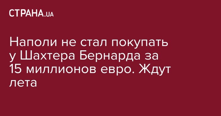 В итоге руководство "Наполи" обратилось к "Шахтеру" по поводу бразильца Бернарда, но получило ответ - 15 миллионов евро. Платить такую сумму за игрока, который через полгода может обрести статус свободного агента ввиду истечения контракта, итальянцы не захотели.