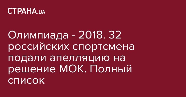 Олимпиада - 2018. 32 российских спортсмена подали апелляцию на решение МОК. Полный список