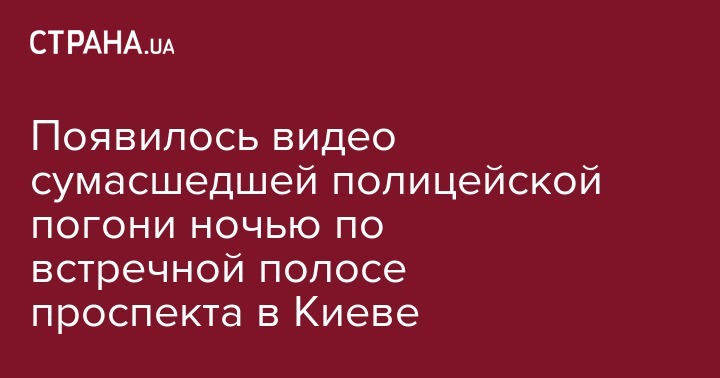 Появилось видео сумасшедшей полицейской погони ночью по встречной полосе проспекта в Киеве