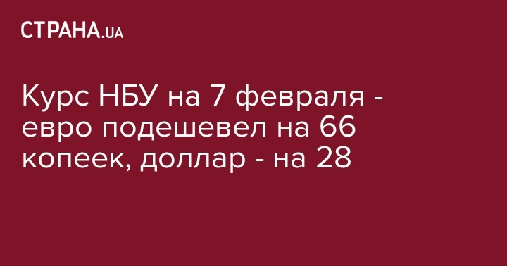 В среду, 7 февраля, Нацбанк установил официальный курс гривны по отношению к иностранным валютам. По сравнению с предыдущим рабочим днем доллар и евро подешевели.