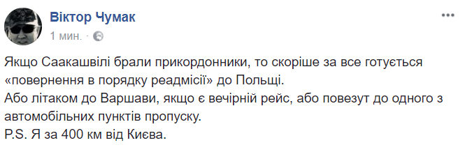 16:12 Нардеп Виктор Чумак считает, что Саакашвили будут по договору о реадмиссии возвращать в Польшу.