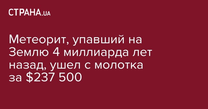 Метеорит, упавший на Землю 4 миллиарда лет назад, ушел с молотка за $237 500
