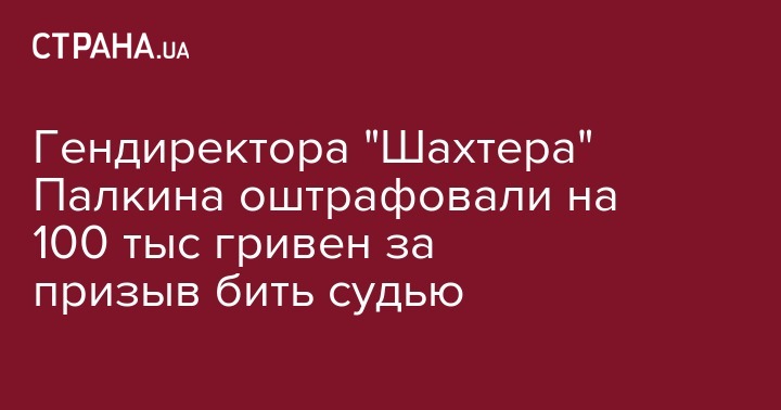 Генеральный директор донецкого "Шахтера" Сергей Палкин оштрафован на 100 тысяч гривен за высказывания в адрес судейской бригады в матче 19 тура УПЛ против луганской "Зари".