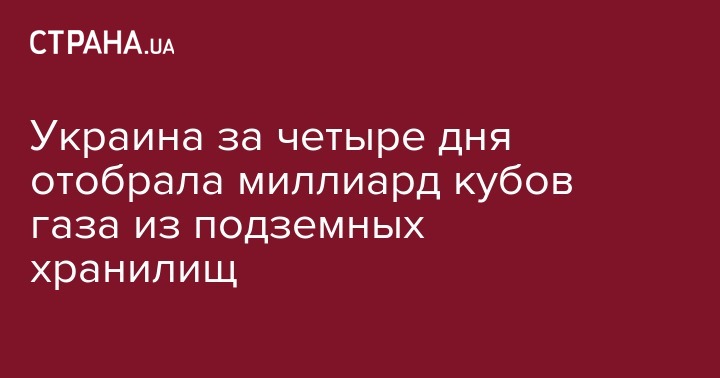 Украина за четыре дня уменьшила объем газа в своих подземных хранилищах почти на 1 млрд куб м. до 10,714 млрд куб. м.
