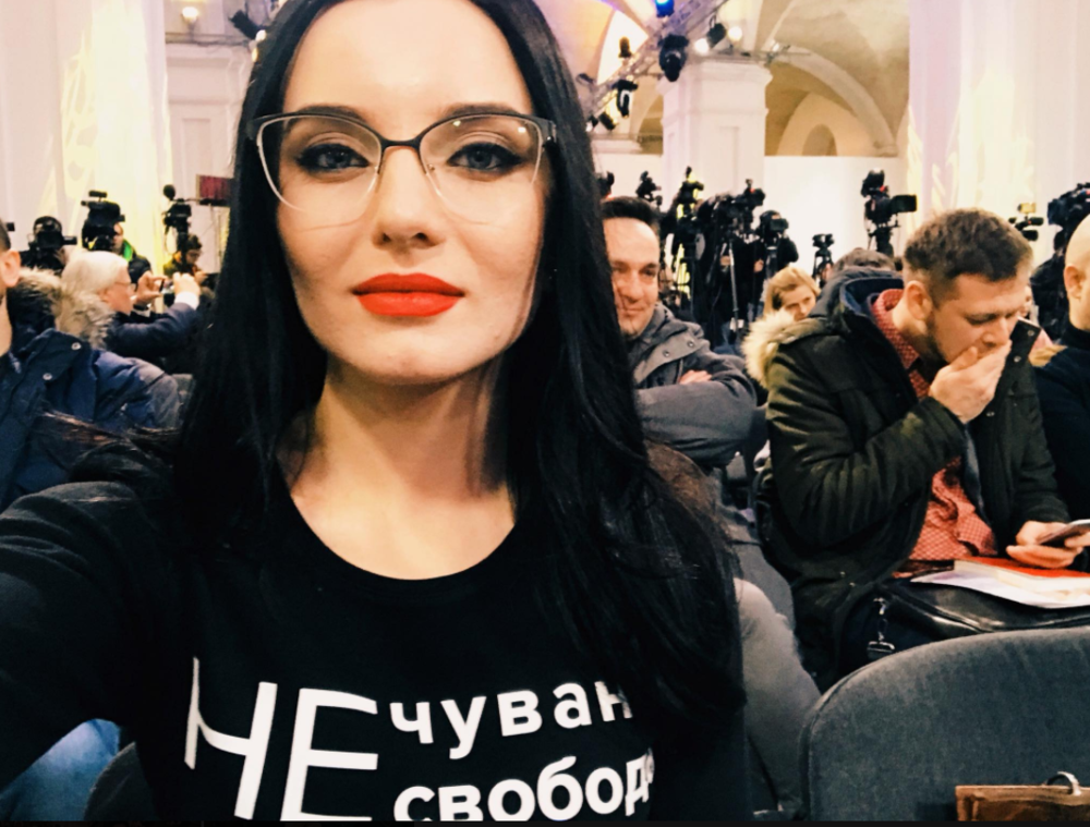 15:52 Журналист "Страны" Валерия Ивашкина пришла на пресс-конференцию президента в креативной футболке. "Нечувана несвобода".