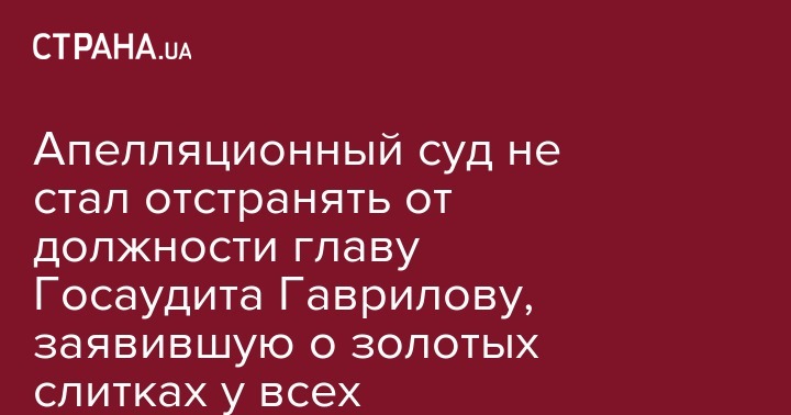 Апелляционный суд не стал отстранять от должности главу Госаудита Гаврилову, заявившую о золотых слитках у всех украинцев