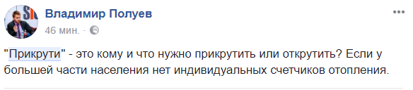 Журналист Владимир Полуев говорит, что акция "Прикрути" вообще не имеет смысла, поскольку у большинства населения таких возможностей нет – их дома не оборудованы даже счетчиками.