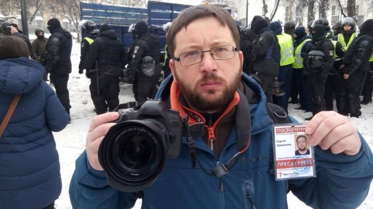 Журналисту "Радио Свобода" Сергею Нужненко, которому 3 марта во время столкновений под Верховной Радой полицейский распылили в лицо газовый баллончик, диагностировали химический ожог.