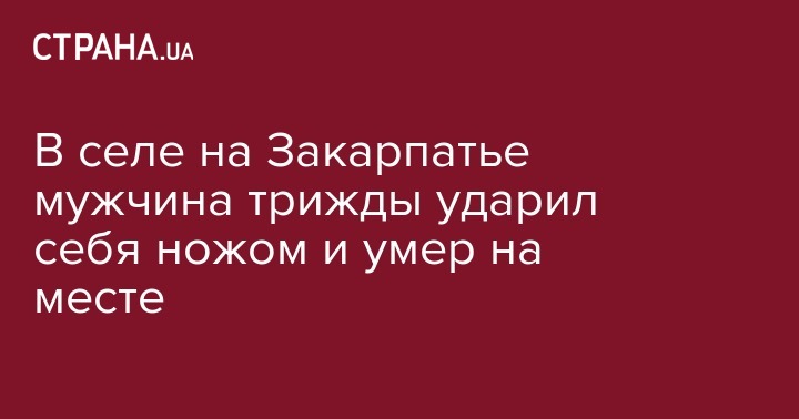 В селе Заречье Закарпатской области мужчина трижды нанес себе ножевые ранения и умер на месте. Об этом сообщает Mukachevo.net.