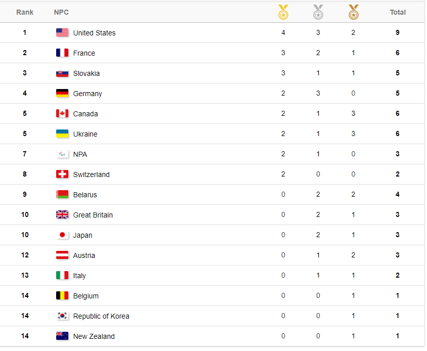 На зимней Паралимпиаде сборная Украины сохранила место в пятерке лучших команд по числу медалей