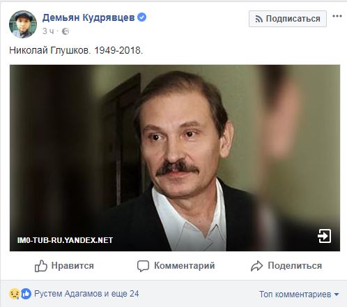 "Николай Глушков. 1949-2018", - написал Кудрявцев.