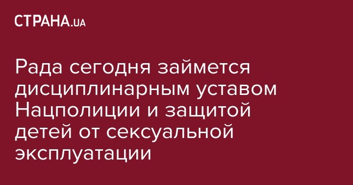 Рада сегодня займется дисциплинарным уставом Нацполиции и защитой детей от сексуальной эксплуатации