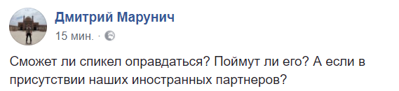 "Сможет ли спикел оправдаться? Поймут ли его? А если в присутствии наших иностранных партнеров?", - спрашивает эксперт Дмитрий Марунич.
