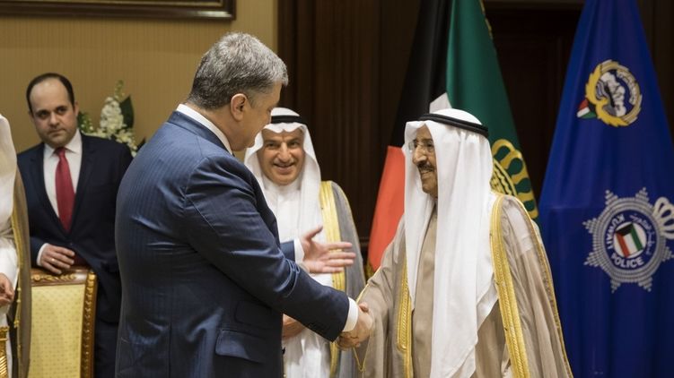 Во время встречи Порошенко с эмиром Кувейта Сабаха аль-Ахмеда аль-Джабера ас-Сабахома стороны договорились о поддержки Кувейтом внешнеполитических инициатив Украины. Речь шла также о перспективах взаимодействия в рамках непостоянного членства Кувейта в Совете безопасности ООН в 2018-2019 гг., в частности по вопросу миротворческой миссии ООН на оккупированной части Донбасса, и членства Украины в Совете по правам человека ООН в 2018-2020 гг.