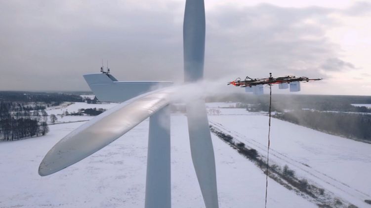 Инженеры латвийской компании Aerones приспособили грузовой беспилотник для очистки лопастей турбин ветрогенераторов. Также дрон "научили" обрабатывать лопасти противообледенительной жидкостью.