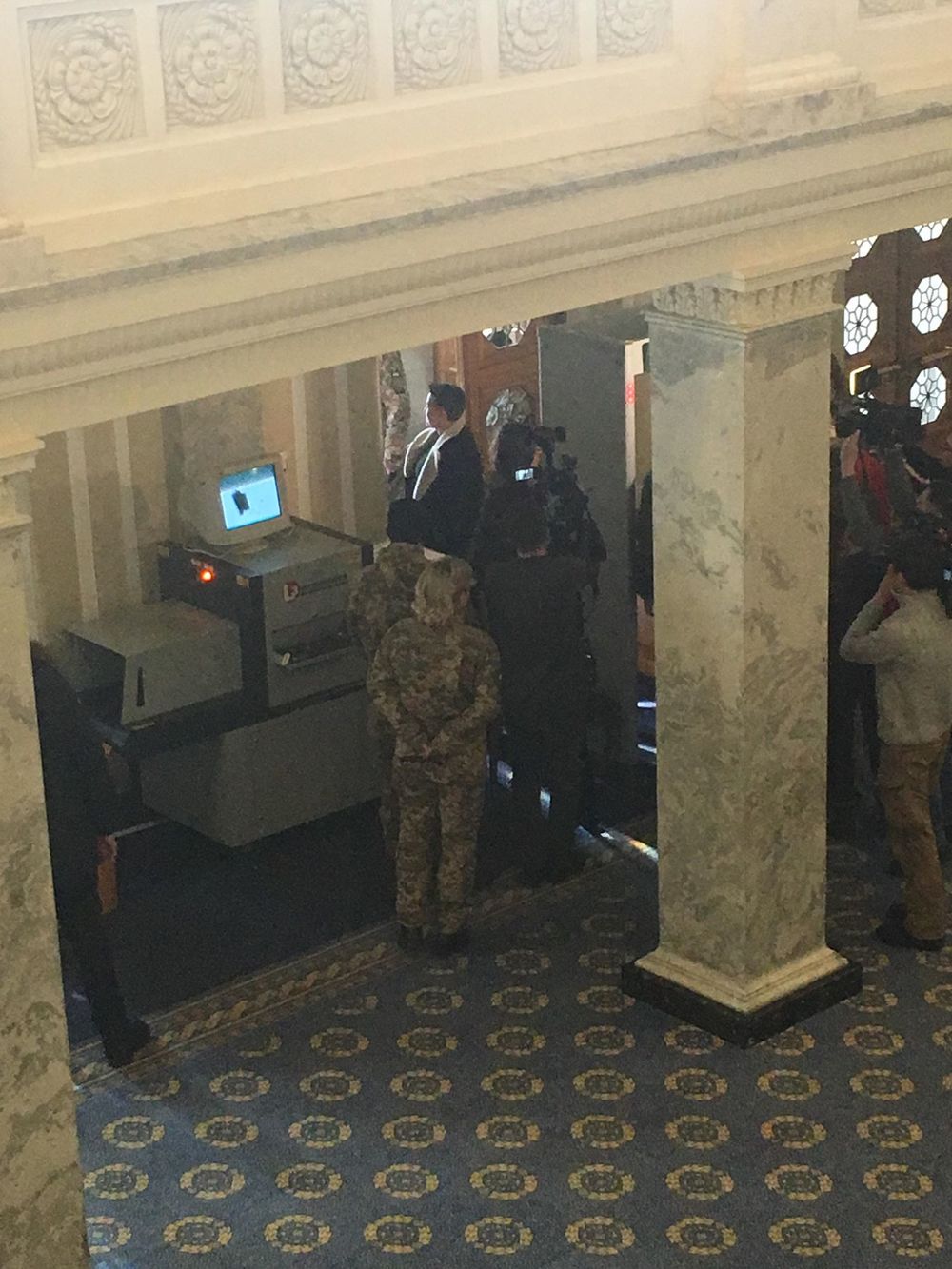 10:35  На входе в Раду сегодня - уже два скандала с оружием. Нардепы Семенченко и Парасюк начали "пищать" на рамках металлоискателей, и охрана не пропускает их внутрь. Началась толкотня с сотрудниками управления госохраны, которые дежурят на входе в парламент.