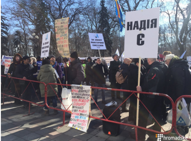 13:59  В толпе кричат - "Луценко - продажная шкура" и "Порошенко придурок!".