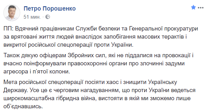 17:06  Петр Порошенко отреагировал на события в Раде. Российская спецоперация и гибридная война - привычные тезисы гаранта.