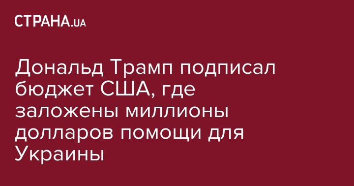 Президент США Дональд Трамп и американский Конгресс в пятницу поддержали закон о бюджете США на 2018 финансовый год, в котором для Украины предусмотрена максимальная помощь в $620,7 млн.
