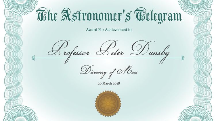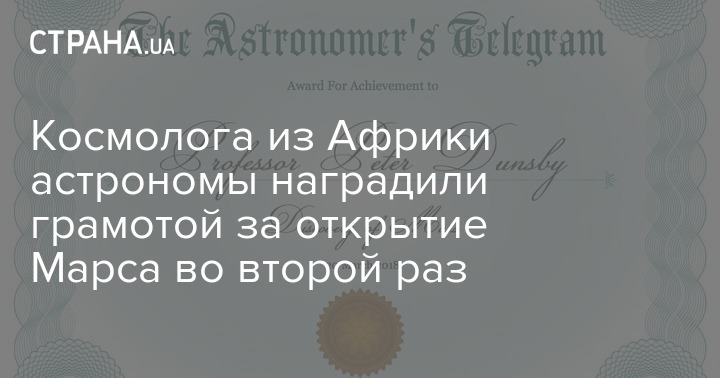 Вскоре в Twitter-аккаунте The Astronomer’s Telegram опубликовали шутливый сертификат на имя Питера Дансби в награду за повторное "открытие" Марса.