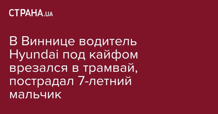 В Виннице водитель автомобиля Hyundai, в состоянии наркотического опьянения, столкнулся с трамваем на перекрестке улиц Хмельницкое шоссе и 600-летия в Виннице, в результате ДТП пострадал 7-летний ребенок. Об этом сообщает пресс-служба полиции Винницкой области.