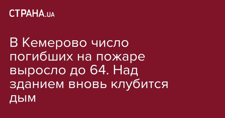 В Кемерово число погибших на пожаре выросло до 64. Над зданием вновь клубится дым