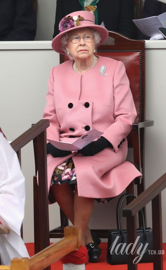 Королева Британии Елизавета II на церемонию списания авианосца HMS Ocean Британских ВМС появилась в нежно-розовом пальто и платье с цветочным принтом.