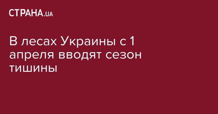 В Украине с 1 апреля по 15 июня будет действовать так называемый сезон тишины. В этот период будет запрещено проведение в лесах и зеленых зонах мероприятий и работ, являющихся источниками повышенного шума и беспокойства. Об этом сообщается на странице Святошинского лесопаркового хозяйства в Facebook.