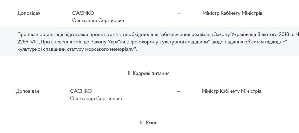Вместе с тем, судя по повестке дня, кадровые вопросы все же рассматривались на заседании Кабмина.