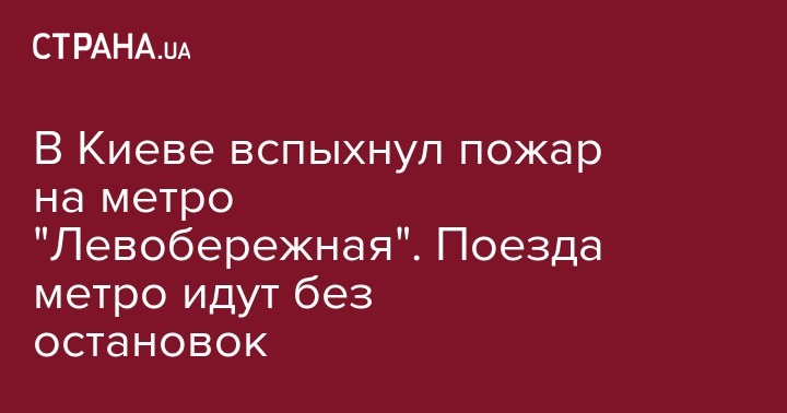В Киеве вспыхнул пожар на метро "Левобережная". Поезда метро идут без остановок