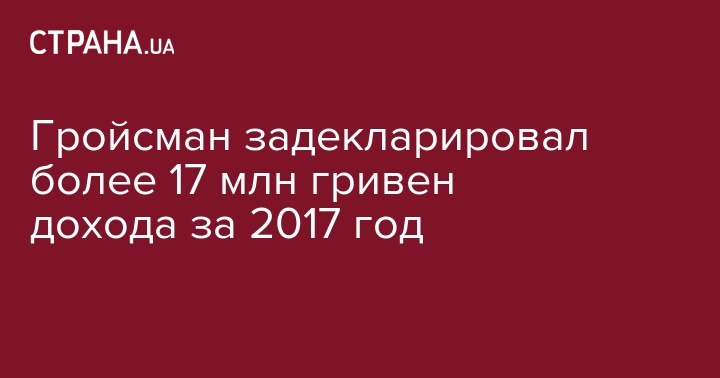 Гройсман задекларировал более 17 млн гривен дохода за 2017 год