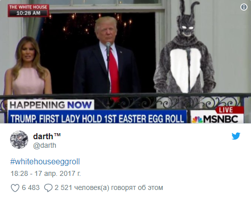В традиционной программе были и соревнования по катанию яиц, чтение Меланией Трамп сказки для малышей в саду, торжественный парад и поздравительная речь президента с балкона рядом с гигантским пасхальным кроликом.