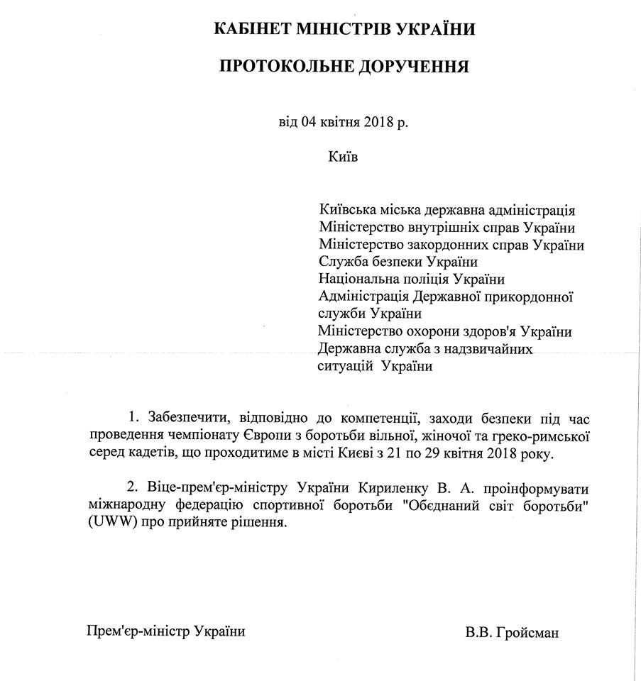 В частности, отметил министр, 5 марта в администрации Президента Украины состоялась встреча с делегацией UWW, которая затем также встретилась с вице-премьер-министром Вячеславом Кириленко.