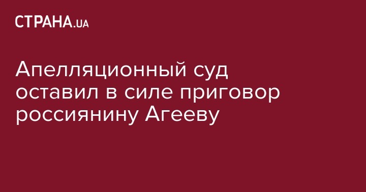 Апелляционный суд Луганской области оставил без изменения решение Новоайдарского райсуда, которым россиянин Виктор Агеев был осужден к 10 годам лишения свободы.