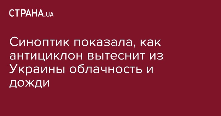 Синоптик показала, как антициклон вытеснит из Украины облачность и дожди