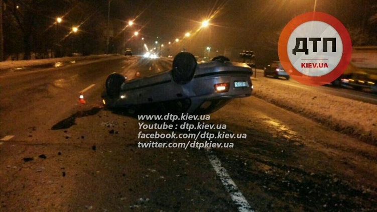 На Броварском проспекте опрокинулась легковушка, dtp.kiev.ua