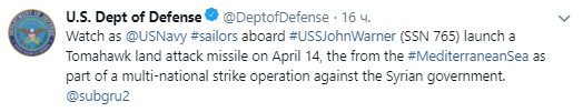 Всего во время атаки, в которой участвовали военные США, Великобритании и Франции, было выпущено 105 ракет с морских и воздушных носителей.