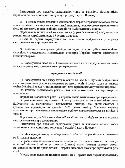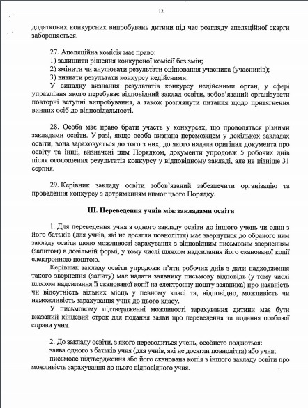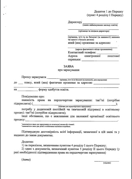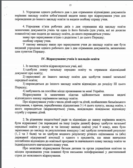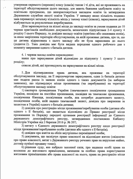3) оригинал или копия соответствующего документа об образовании (кроме учеников первого и второго классов): табель учебных достижений за соответствующий класс, свидетельство, другой документ, подтверждающий получение образования.