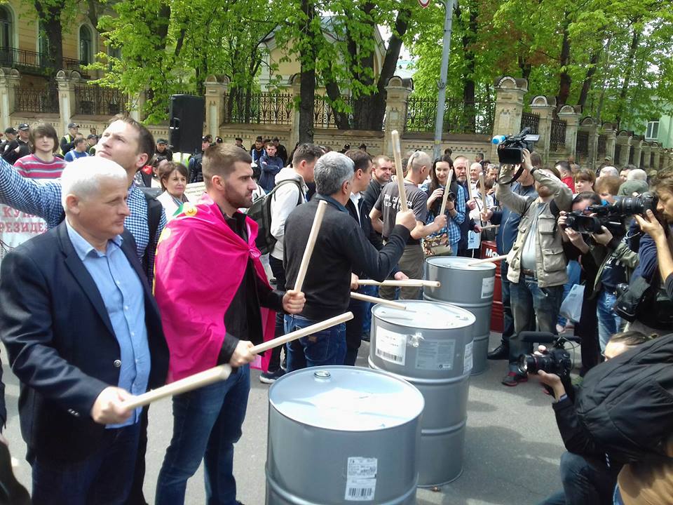 Сторонники Саакашвили провели акцию на Банковой, требуя отставки Порошенко после "пленок Онищенко"